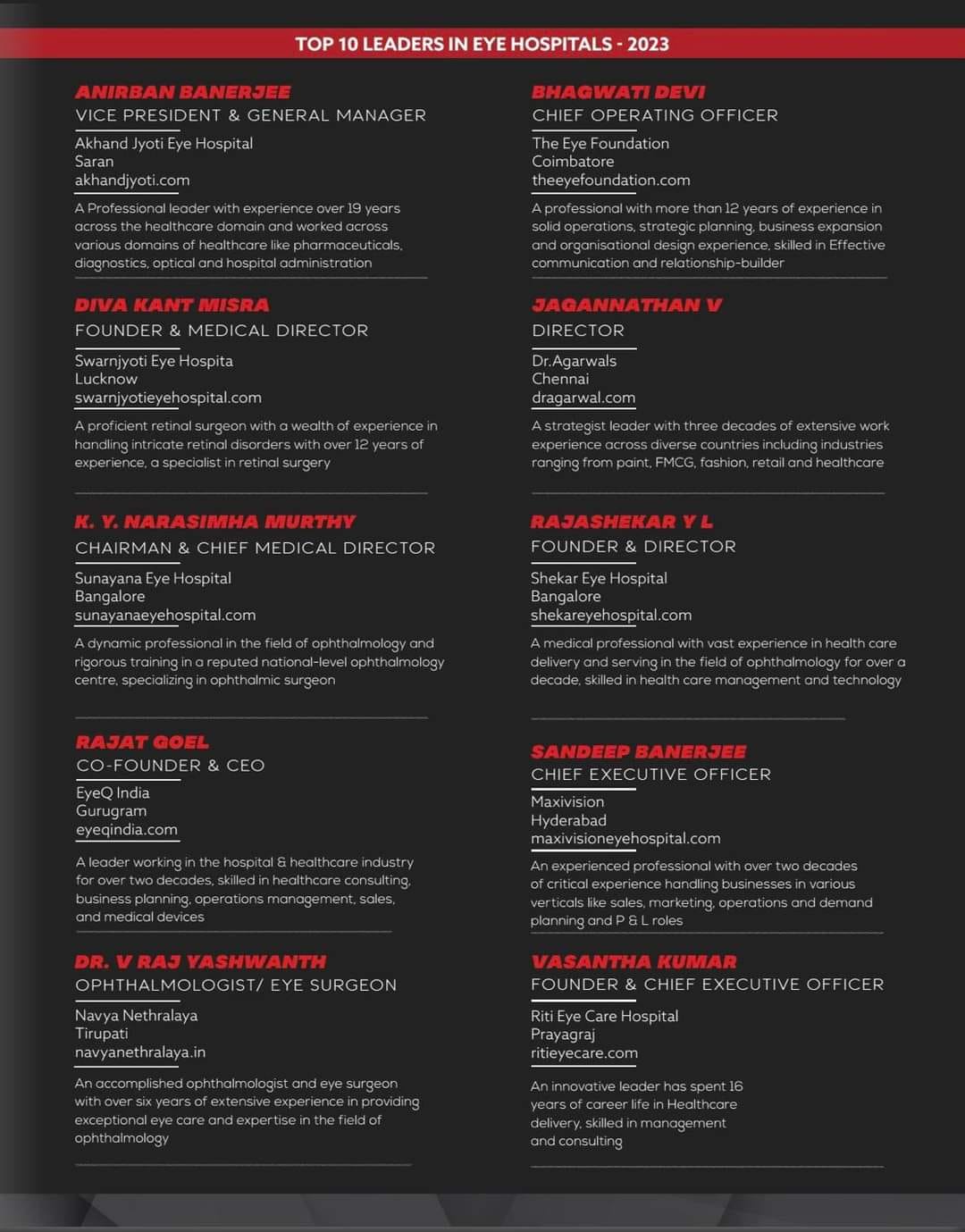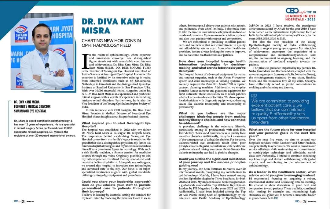 Established the Lucknow-based institution, recognized by CEO Insights as one of the Top 10 Leaders in Eye Hospitals in India.